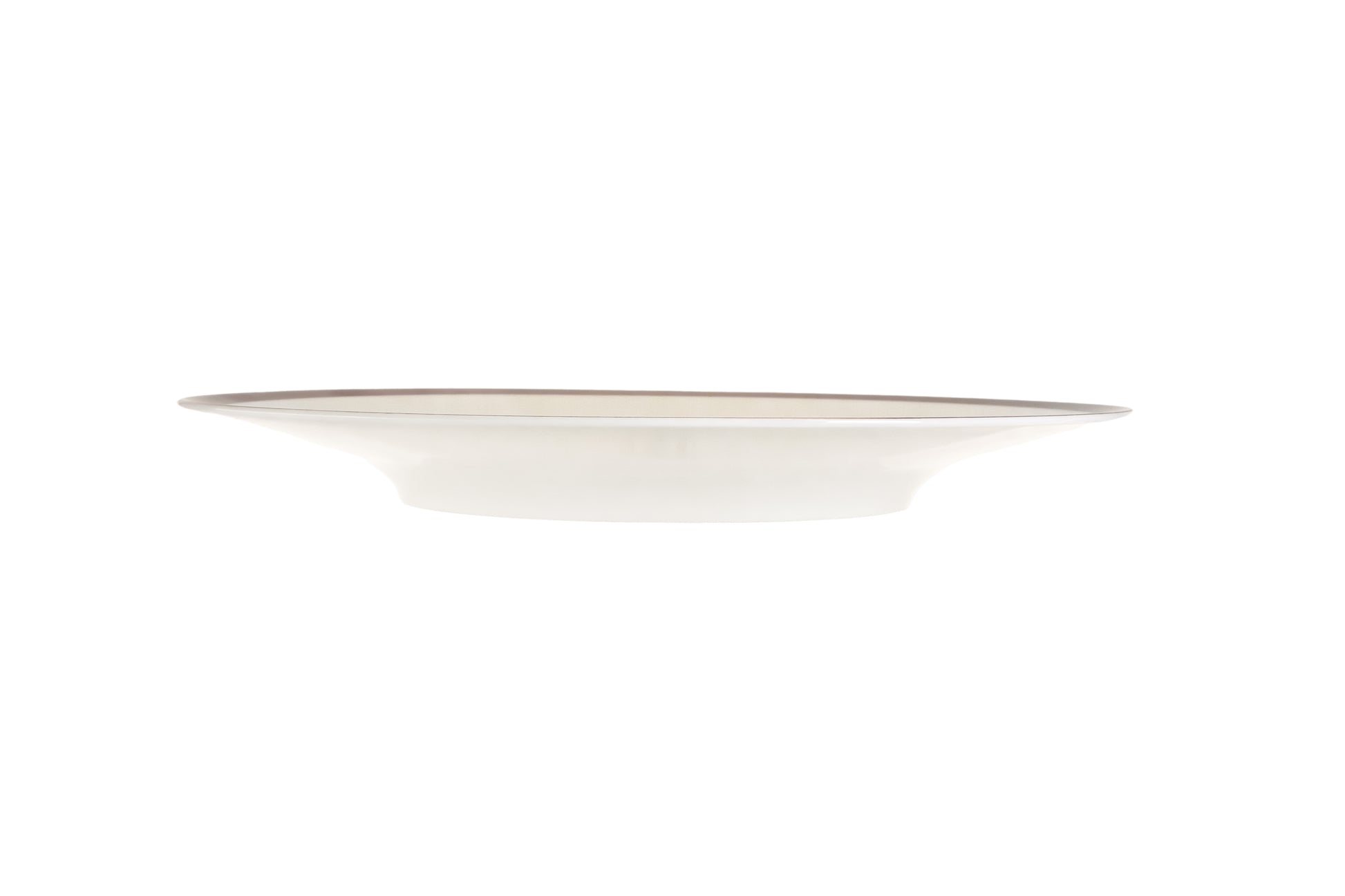 This beautiful hand made porcelain flat plate from the 'Copper Line' collection embodies modern sophistication. Its clean white finish is beautifully framed by a bold, continuous copper band, offering a warm metallic accent to your table.
