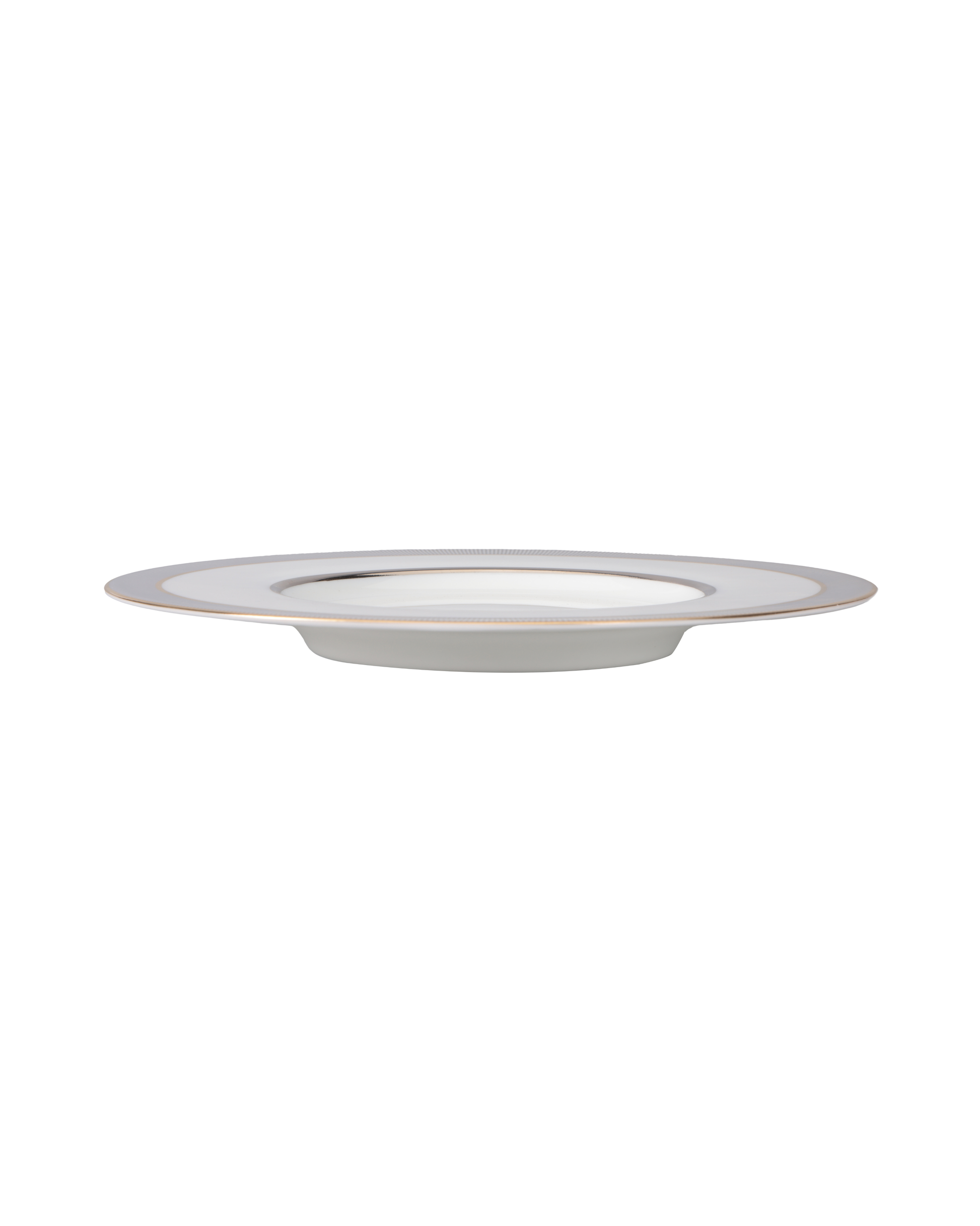 Define sophistication at your table with the 'Gold Sprites' collection. This dinner plate is a statement of true luxury, produced using a meticulous overglaze gold gilding technique. Its wide, intricately textured grey band is framed by two delicate gold lines, bringing an exclusive and elevated feel to any main course.