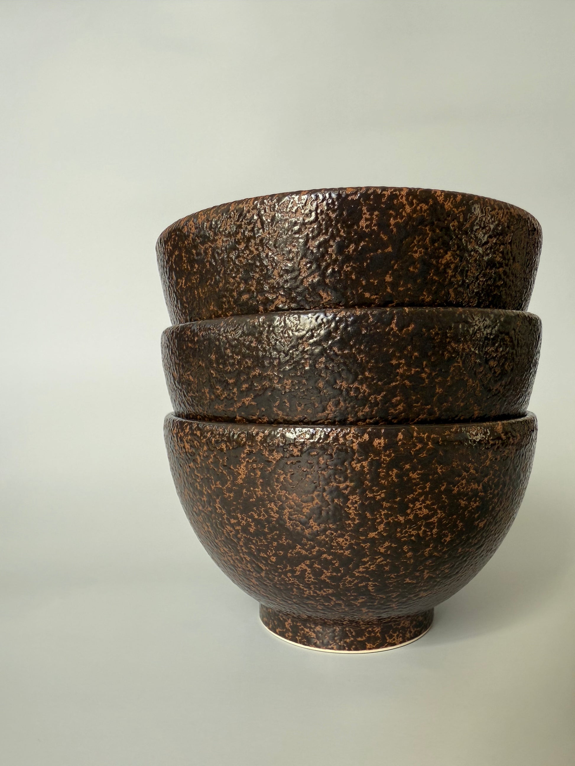 This versatile, footed bowl is a perfect piece of everyday craft. Made by artisans from high-fired stoneware, it features a unique, reactive crater-glaze in a deep, earthy tone. The rich, tactile texture and size make this a go-to bowl for your daily rituals.