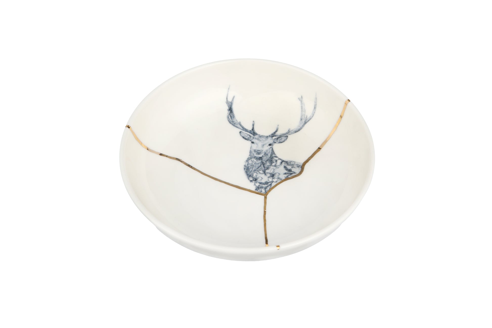 This beautiful bowl from the 'Spirits' collection embodies grace and intuition. It features a detailed deer design, symbolizing gentle strength and nature's quiet wisdom, with a kintsugi-inspired gold line that celebrates imperfection and beautiful repair. A unique and meaningful piece for your home.